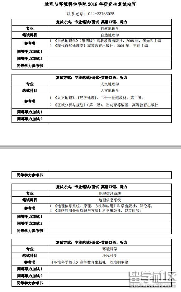天津師范大學地理與環(huán)境科學學院2018考研復試內容