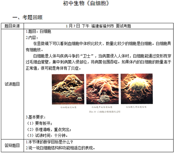 2017下半年高中生物教師資格證面試真題(第四批)