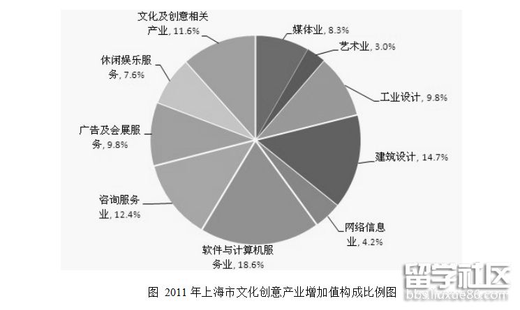 在上海文化創(chuàng)意產(chǎn)業(yè)中,軟件與計(jì)算機(jī)服務(wù)業(yè)、建筑設(shè)計(jì)、咨詢服務(wù)業(yè)經(jīng)濟(jì)規(guī)模較大,占文化創(chuàng)意產(chǎn)業(yè)增加值比重分別為18.6%、14.7%和12.4%。