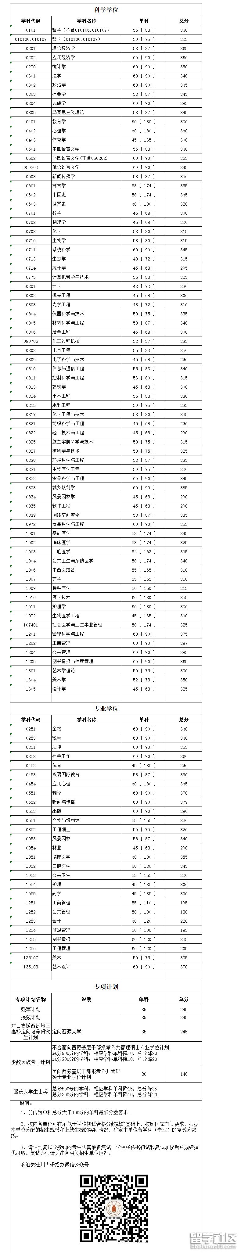 2019四川大學(xué)考研分?jǐn)?shù)線