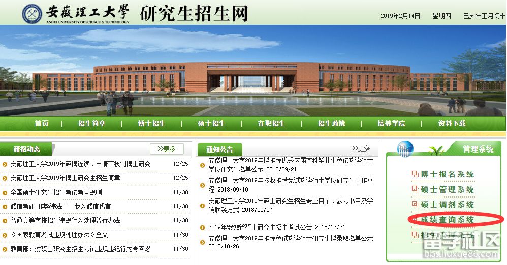 安徽理工大學(xué)2019考研成績查詢?nèi)肟?/strong>