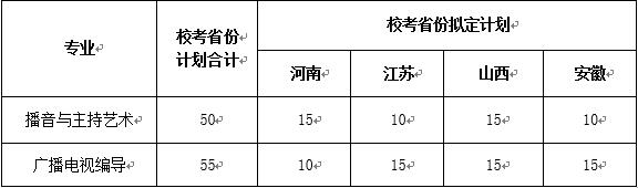 我校2018年播音與主持藝術(shù)專業(yè)、廣播電視編導(dǎo)專業(yè)擬在湖南、河南、江蘇、山西、安徽等省份招生。??际》輸M定計劃見下表,湖南等承認(rèn)省統(tǒng)考成績省份招生計劃另行公布,具體招生計劃詳見各省(區(qū)、市)2018年招生計劃來源表。