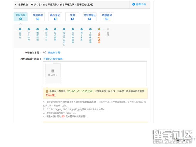 報(bào)考東華大學(xué)2018年高水平運(yùn)動(dòng)隊(duì)的考生請(qǐng)注意:請(qǐng)盡快在報(bào)名系統(tǒng)中上傳簡章中要求的所有材料,上傳入口就是上傳申請(qǐng)表的入口,所有材料都在這里上傳。