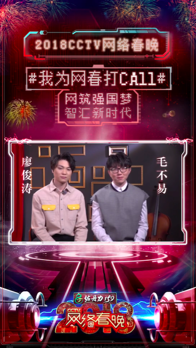 2018年1月29日,2018年CCTV網(wǎng)絡(luò)春晚首次曝光嘉賓陣容,撒貝寧、朱迅、高博、李紅四位主持率先亮相,毛不易、廖俊濤、盛一倫等一眾人氣明星友情助陣,為2018年CCTV網(wǎng)絡(luò)春晚打call。
