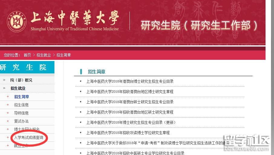 上海中醫(yī)藥大學(xué)2018考研成績查詢?nèi)肟冢?BR> http://www.shutcm.com/shutcm/yjsy/zsyjybgs/zsjz/index.shtml