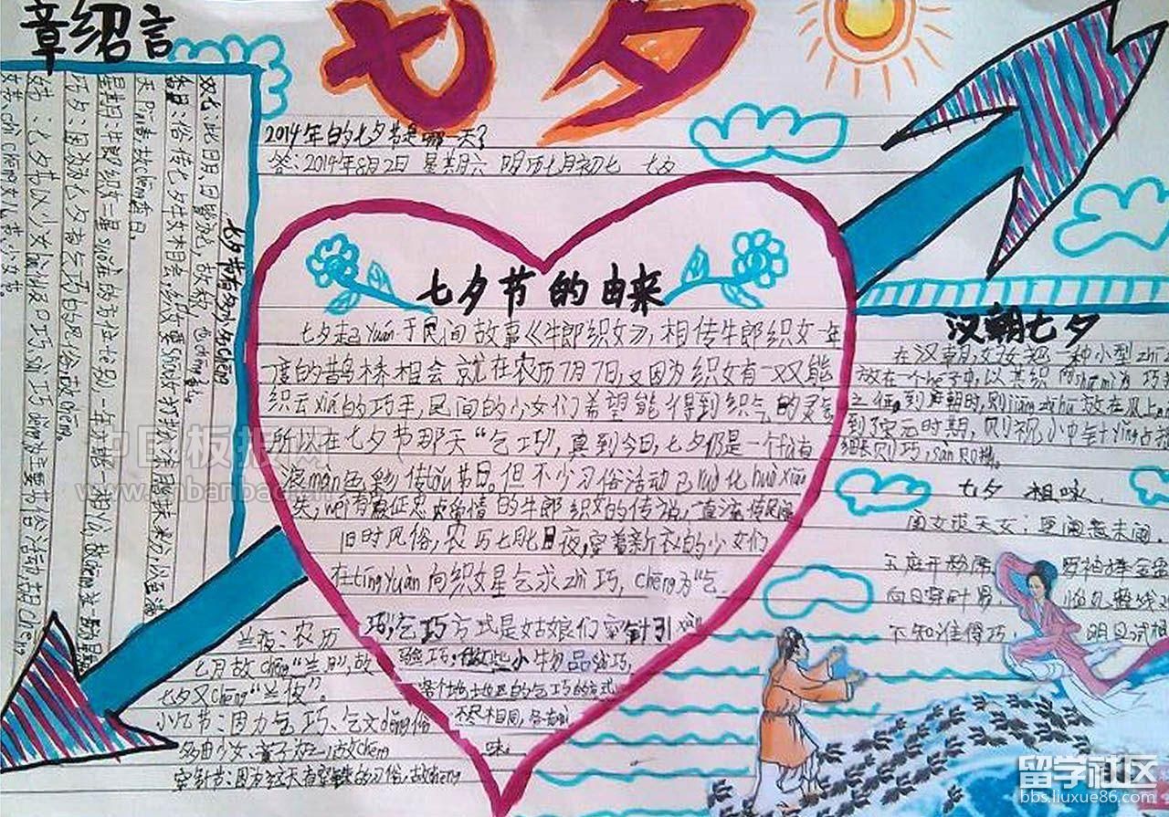 同學(xué)們都知道牛郎織女的故事吧,雖然它只是個傳說,但是它也代表了我們現(xiàn)在人渴望愛情,渴望另一半的象征,是中國流傳至今的傳統(tǒng)節(jié)日,下面出國留學(xué)網(wǎng)小編為大家?guī)砹宋迥昙壠呦η槿斯?jié)主題手抄報2017,僅供參考,謝謝閱讀。