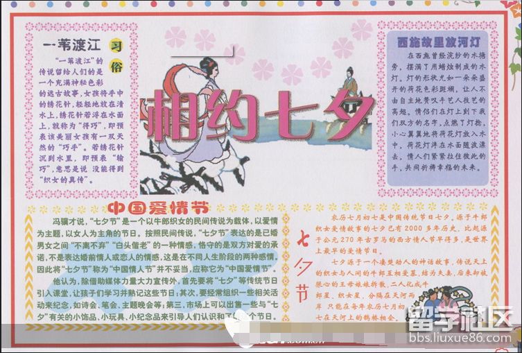 六年級(jí)七夕情人節(jié)主題手抄報(bào)2017