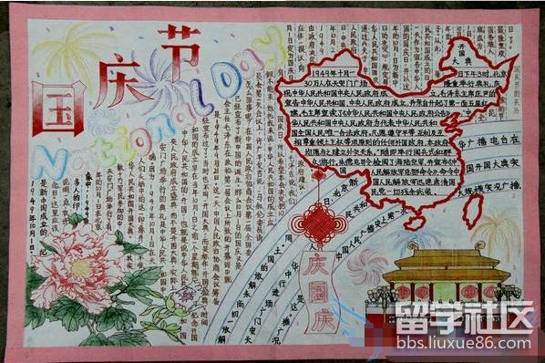 10月1日是普天同慶的節(jié)日,這代表著中國的成立,一個國家的獨立。當(dāng)然這只是中國人值得慶祝的節(jié)日,所以國慶節(jié)都會放7天假來慶祝這個偉大的時刻。下面出國留學(xué)網(wǎng)小編為大家?guī)砹诵W(xué)一年級國慶節(jié)主題手抄報2017,謝謝閱讀,喜歡的朋友可以關(guān)注我們網(wǎng)站。