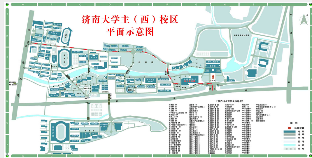 附:濟(jì)南大學(xué)主(西)校區(qū)平面示意圖
