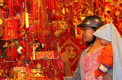 春節(jié)是越南民間最大也是最熱鬧的傳統(tǒng)節(jié)日。越南人把春節(jié)視為辭舊迎新的日子,一般從農(nóng)歷12月中旬開始辦年貨準(zhǔn)備過年?;ㄊ惺窃侥洗汗?jié)的重要活動(dòng)之一。比如河內(nèi),春節(jié)前約10天,花市就開始熱鬧。越南人過春節(jié)也有貼春聯(lián)的習(xí)慣。以前春聯(lián)用漢字書寫,文字拼音化以后,現(xiàn)在大部分春聯(lián)改用拼音文字,每個(gè)拼音字是一個(gè)方塊,自成風(fēng)格。