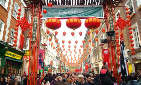 春節(jié)期間,英國(guó)的大街上會(huì)增添許多Chinese New Year(中國(guó)春節(jié))的東西,非中餐館也會(huì)添置幾道“Special Meal Deal for Chinese New Year”(專為中國(guó)春節(jié)準(zhǔn)備的菜肴),英國(guó)大報(bào)推出“中國(guó)周”教人學(xué)漢語,英國(guó)也處處洋溢著中國(guó)春節(jié)的氣氛。以倫敦為例:2007年的大年初一,30萬人(其中絕大部分不是華人)在倫敦特拉法加廣場(chǎng)齊聲高呼“恭喜發(fā)財(cái)”,當(dāng)時(shí)的場(chǎng)面令所有華人都感到無比驕傲。舞龍舞獅、爆竹煙花、盛裝巡游、文藝表演等歡慶活動(dòng)令人目不暇接。兩個(gè)廣場(chǎng)上還有文藝演出和煙火表演。倫敦警方將相關(guān)街區(qū)全部變成步行街,持續(xù)一整天的慶祝活動(dòng)盛況空前。這一天倫敦簡(jiǎn)直是中國(guó)化了,樂滋滋的孩子們手里拿著撥浪鼓和氣球豬;喜歡中國(guó)美食的男男女女?dāng)D在唐人街共進(jìn)中餐,在市中心的唐人街,年輕人紛紛用相機(jī)、手機(jī)、攝像機(jī)留住舞龍舞獅表演的倩影;有些英國(guó)人干脆穿上了中國(guó)的唐裝……倫敦儼然成了中國(guó)的北京,成了一座中國(guó)城。此前倫敦已舉行過兩次春節(jié)彩燈游行。2011年有10萬人參加了這一活動(dòng),其鮮明濃郁的中國(guó)文化特色使游行獲得巨大的成功。