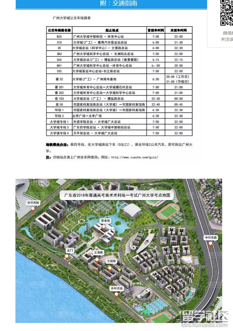 2018年廣東美術(shù)統(tǒng)考廣州大學(xué)考點(diǎn)交通指南