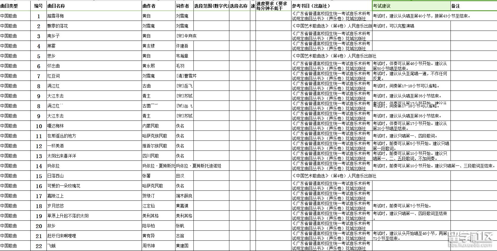 聲樂和器樂考試規(guī)定曲目>>>點擊下載完整版附件3(約1240行)