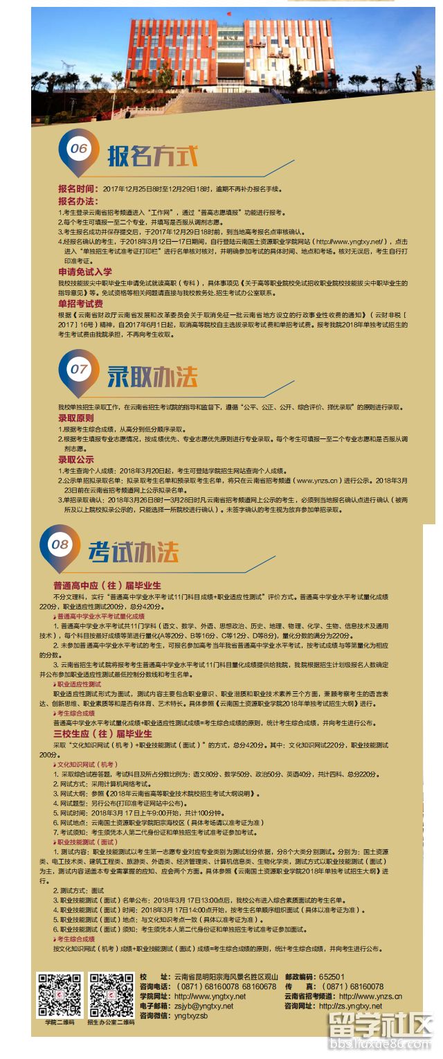出國留學高考網(wǎng)為大家提供云南國土資源職業(yè)學院2018單獨招生考試簡章,更多高考資訊請關(guān)注我們網(wǎng)站的更新!