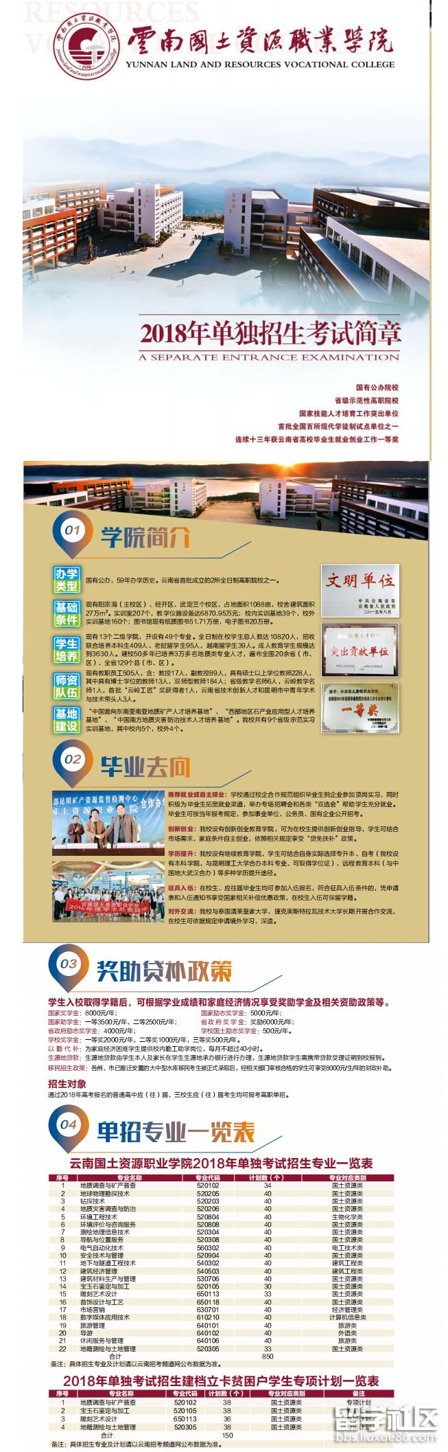 云南國土資源職業(yè)學院2018單獨招生考試簡章