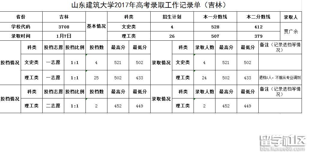 山東建筑大學(xué)2017高考分?jǐn)?shù)線(吉林)