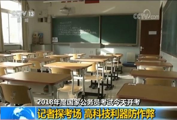 央視記者 宋菀:我現(xiàn)在是在2018年度國家公務(wù)考試北京石景山區(qū)的一個(gè)考點(diǎn),來到現(xiàn)場我們看到,這里的每間教室可以容納30名考生,同時(shí)每個(gè)座位之間的距離是80厘米,另外,為了防止作弊,每個(gè)考場都配有實(shí)時(shí)監(jiān)控?cái)z像頭和無線信號(hào)屏蔽儀。