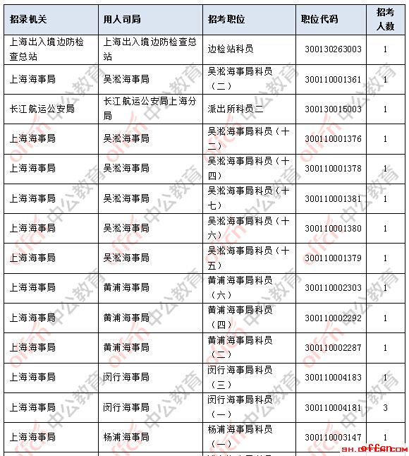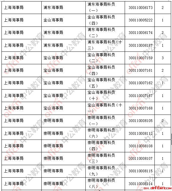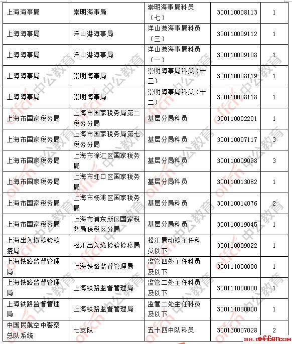 截止到2日16時(shí),工作地點(diǎn)在上海的職位共有45個(gè)無人報(bào)考,占全部職位的13.93%,主要集中在上海海事局、上海市國家稅務(wù)局以及上海鐵路監(jiān)督管理局,下面是無人報(bào)考職位一覽表,建議廣大考生多關(guān)注一些較冷職位,避免激烈競爭,結(jié)合自身?xiàng)l件,找到屬于自己的最佳職位。