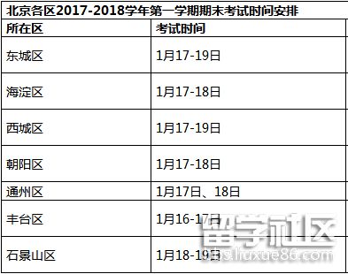 北京各區(qū)2018高三期末考試時(shí)間公布