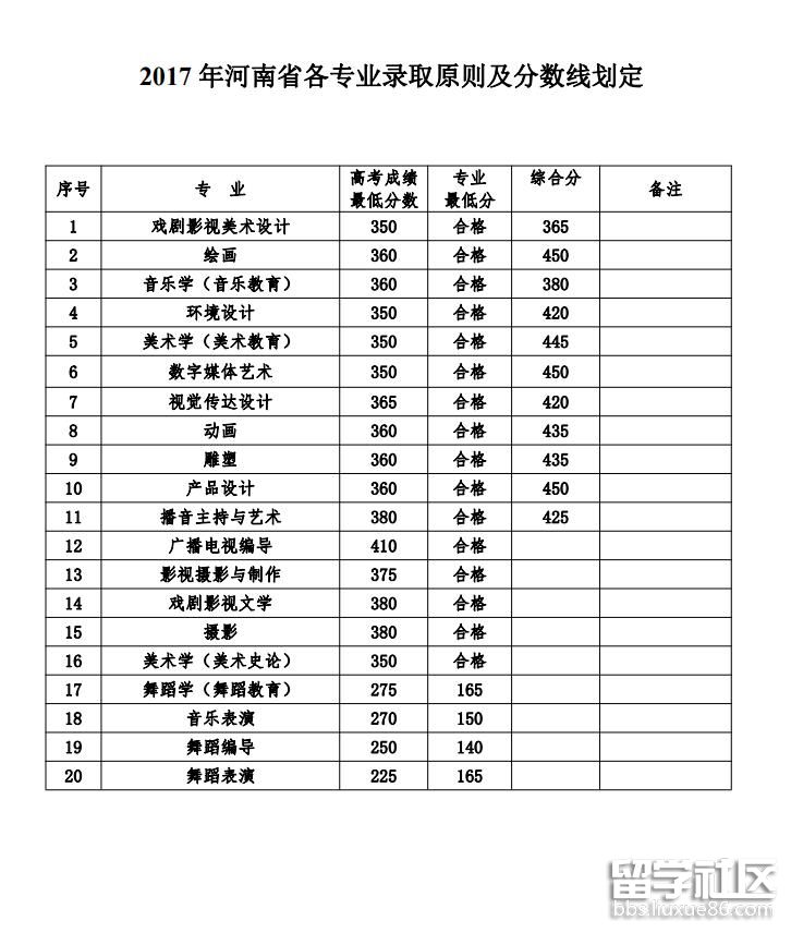 新疆藝術(shù)學(xué)院2017年河南省各專業(yè)高考錄取分數(shù)線
