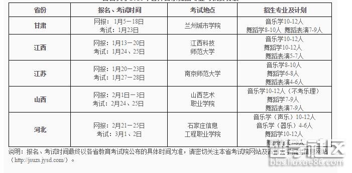 吉首大學2018年省外音樂舞蹈專業(yè)考試安排表