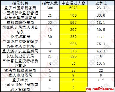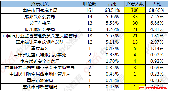 2018國(guó)家公務(wù)員考試重慶各單位招錄情況