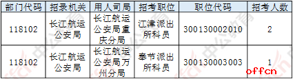 截止到6日16時(shí),工作地點(diǎn)在重慶的職位共有2個(gè)無(wú)人報(bào)考,占全部職位的0.9%。無(wú)人報(bào)考職位為局長(zhǎng)江航運(yùn)公安局重慶分局江津派出所科員、長(zhǎng)江航運(yùn)公安局萬(wàn)州分局奉節(jié)派出所科員兩個(gè)職位。下面是無(wú)人報(bào)考職位一覽表: