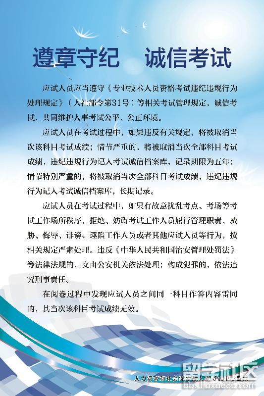 11.應(yīng)試人員須認(rèn)真閱讀有關(guān)規(guī)定,遵守考場規(guī)則,服從考試工作人員管理,接受監(jiān)考人員的監(jiān)督和檢查。對有作弊行為,無理取鬧,威脅、侮辱、誹謗、誣陷工作人員或其他應(yīng)試人員的,將按《專業(yè)技術(shù)人員資格考試違紀(jì)違規(guī)行為處理規(guī)定》和有關(guān)規(guī)定處理。替考、電子作弊等違反《中華人民共和國刑法修正案(九)》等構(gòu)成犯罪的,依法追究刑事責(zé)任。