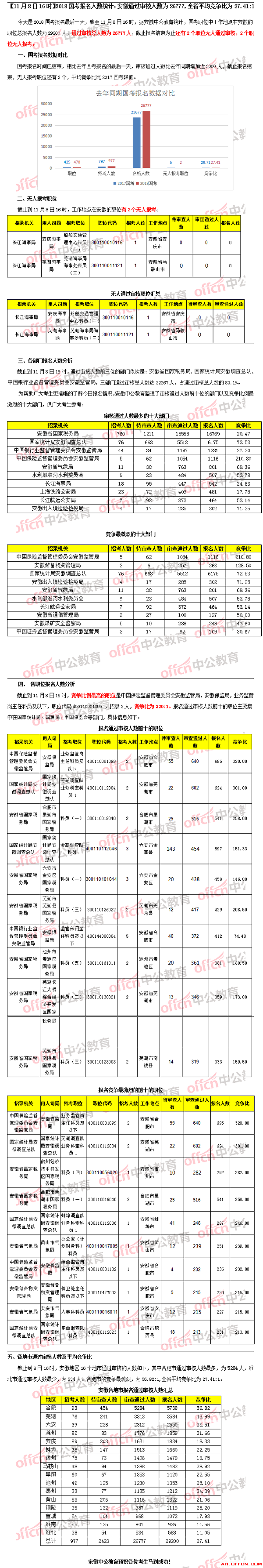 2018年安徽國考26777人過審 平均競爭比27.41:1(8日16時)