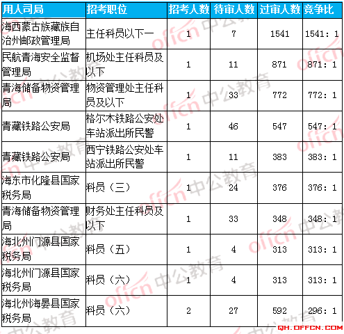報(bào)名人數(shù)前十的職位主要集中在青海省郵政管理局、青海儲(chǔ)備物資管理局、青藏鐵路公安局、青海省國(guó)家稅務(wù)局等部門,具體信息如下:
