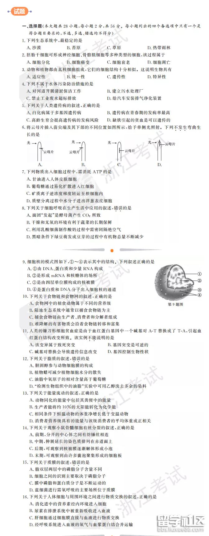 2017年下半年浙江省新高考學(xué)考選考生物試題