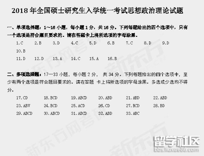 2018年考研初試已經(jīng)結(jié)束,出國留學(xué)網(wǎng)考研政治頻道在考后第一時間為大家提供廣西2018考研政治答案,更多考研政治真題及答案請關(guān)注我們網(wǎng)站的更新!