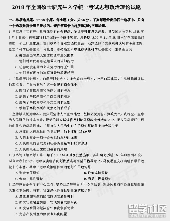 2018年考研政治真題及答案解析匯總>>>點(diǎn)擊查看