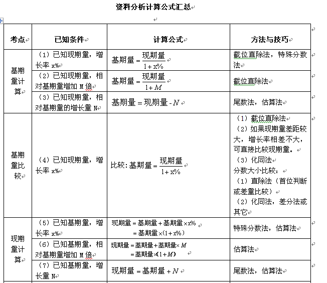2018年國家公務(wù)員考試資料分析計算公式匯總