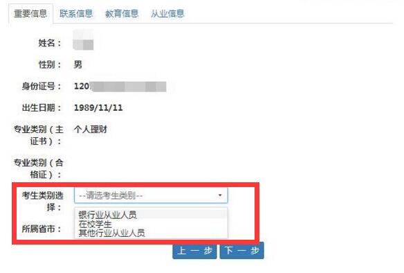 銀行從業(yè)資格證書申請資料填寫(第三項):申請資料確定。在“重要信息”填寫部分,“考生類別選擇”分:銀行業(yè)從業(yè)人員、在校生、其他行業(yè)從業(yè)人員三種??忌枰凑諏嶋H情況填寫。