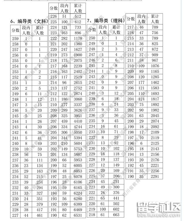 2018四川編導類統(tǒng)考成績一分段統(tǒng)計表