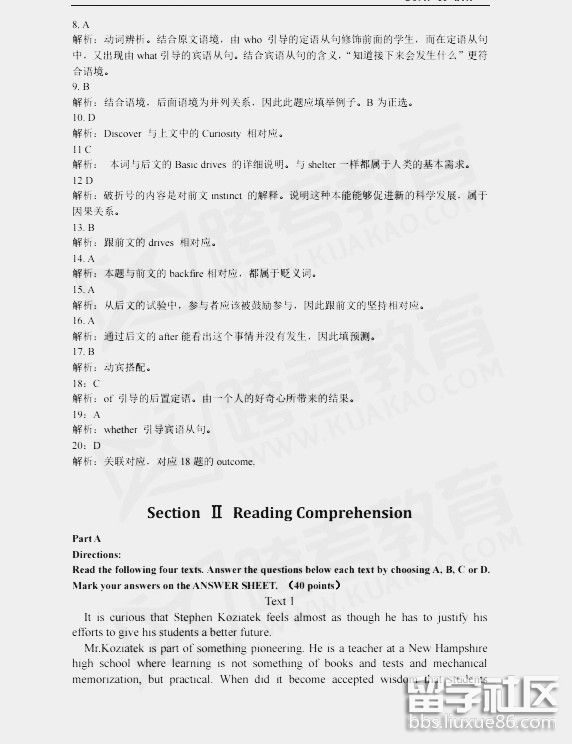| 考研英語答案 | 考研數(shù)學(xué)答案 | 政治答案 |