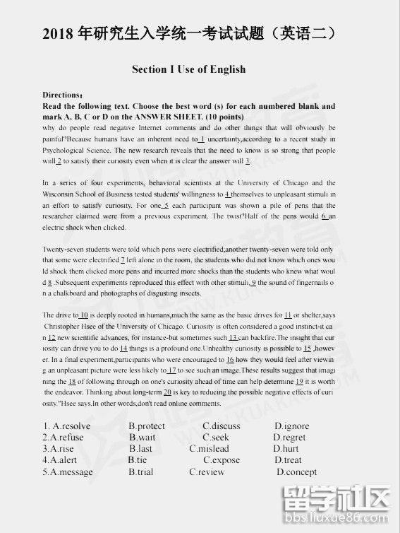 考上或許是福,考不上也未必不是福;不要計(jì)較結(jié)果,重要的是你經(jīng)歷了,也就夠了!出國留學(xué)網(wǎng)考研英語二頻道在考后第一時間為大家提供2018天津考研英語二真題及答案已公布,更多考研英語二真題及答案請關(guān)注我們網(wǎng)站的更新!