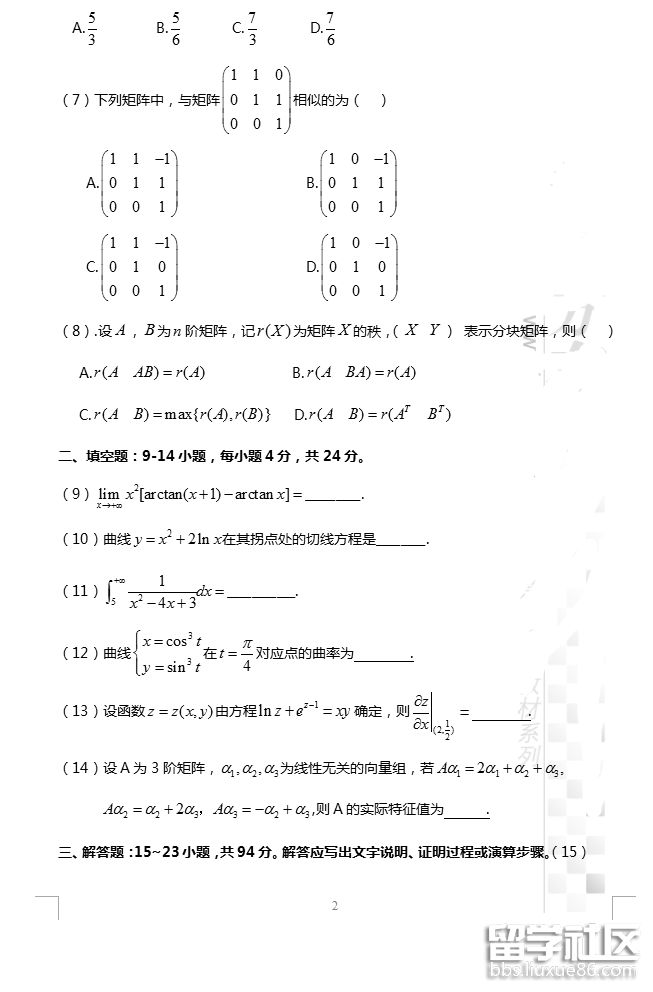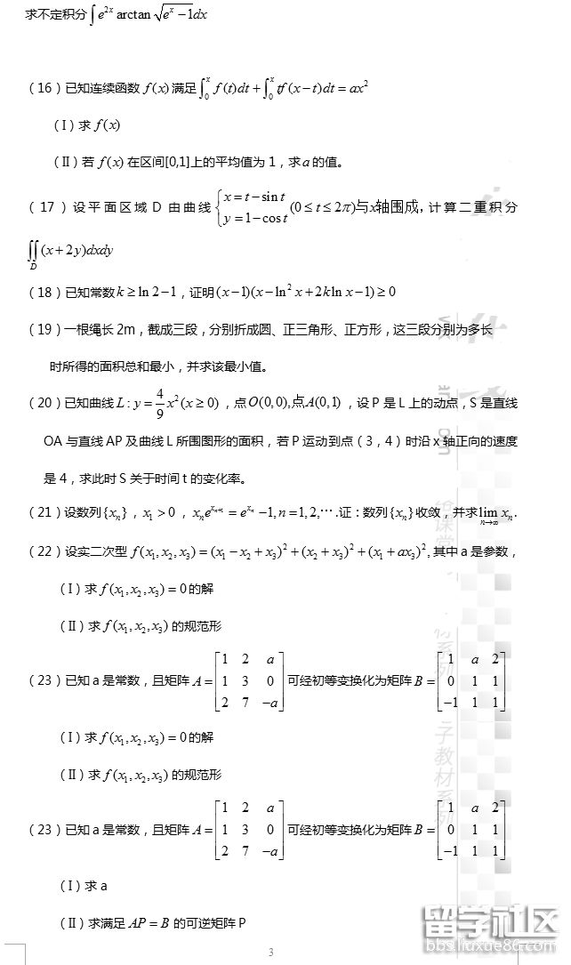 | 英語一真題 | 英語二真題 | 數(shù)學(xué)一真題 | 數(shù)學(xué)二真題 | 數(shù)學(xué)三真題 | 數(shù)農(nóng)真題 | ||