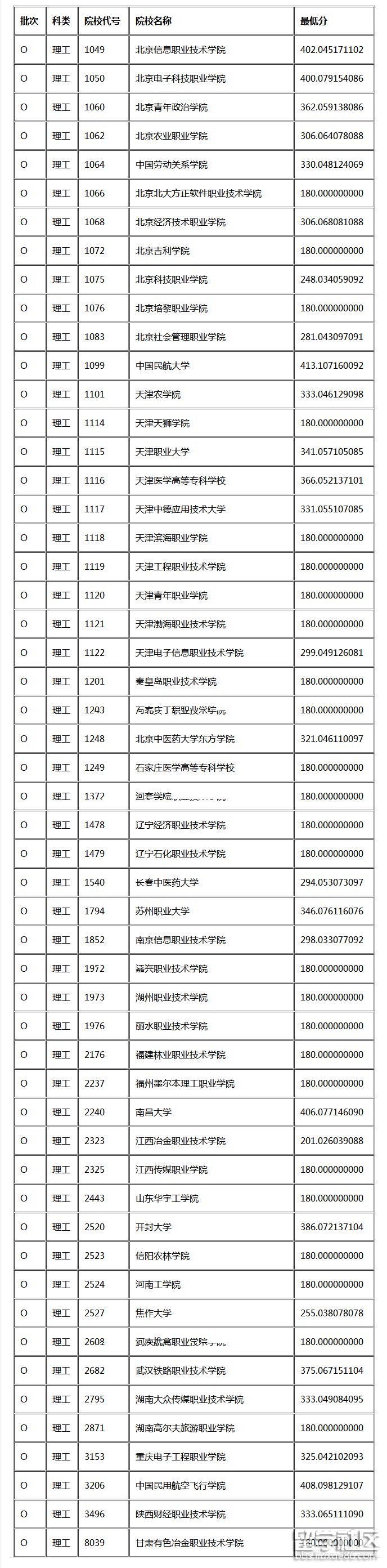 2017年甘肅高考高職專科批理工類O段投檔最低分?jǐn)?shù)線