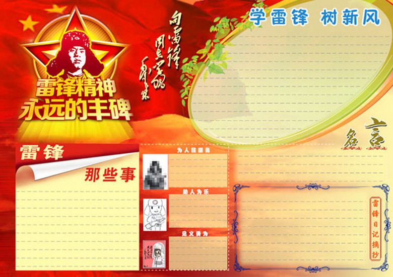 學(xué)雷鋒樹新風(fēng)手抄報(bào)版面設(shè)計(jì)圖5:雷鋒語錄