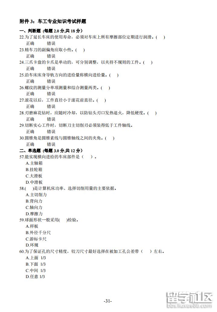 2018湖北技能高考車工專業(yè)知識(shí)考試樣題