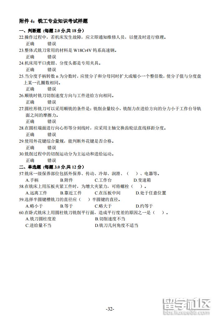 2018湖北技能高考銑工專業(yè)知識考試樣題