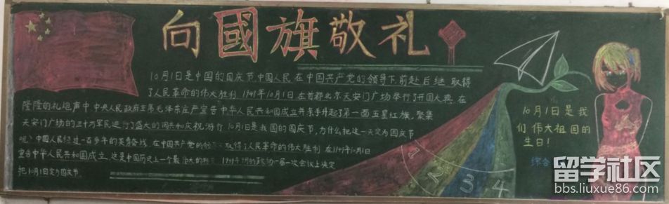 出國留學(xué)網(wǎng)整理了向國旗敬禮黑板報(bào)設(shè)計(jì),歡迎大家參考版面設(shè)計(jì)。希望祖國越來越興旺,我為自己是一個(gè)中國人而感到驕傲,我要努力學(xué)習(xí),做一個(gè)有道德的青少年!