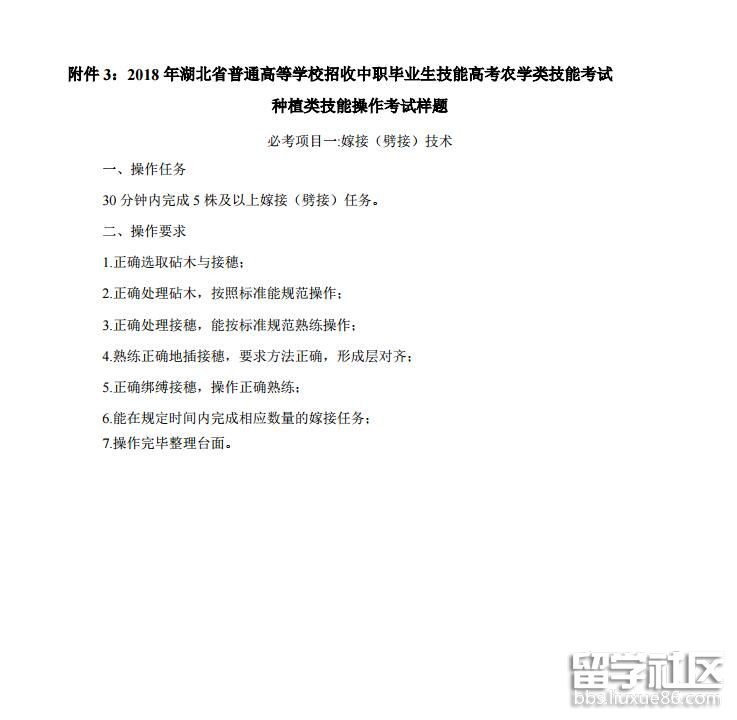 2018湖北技能高考種植類技能操作考試樣題