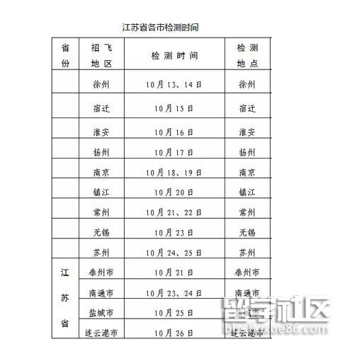 2018年度江蘇省各市海軍招飛初檢檢測(cè)時(shí)間表