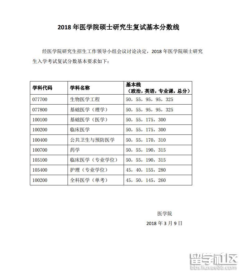 同濟大學醫(yī)學院2018考研復試分數(shù)線