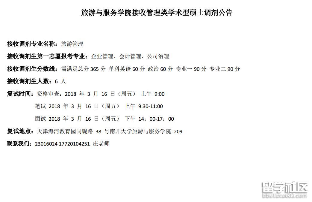 南開大學(xué)145旅游與服務(wù)學(xué)院2018接收管理類學(xué)術(shù)型碩士調(diào)劑公告