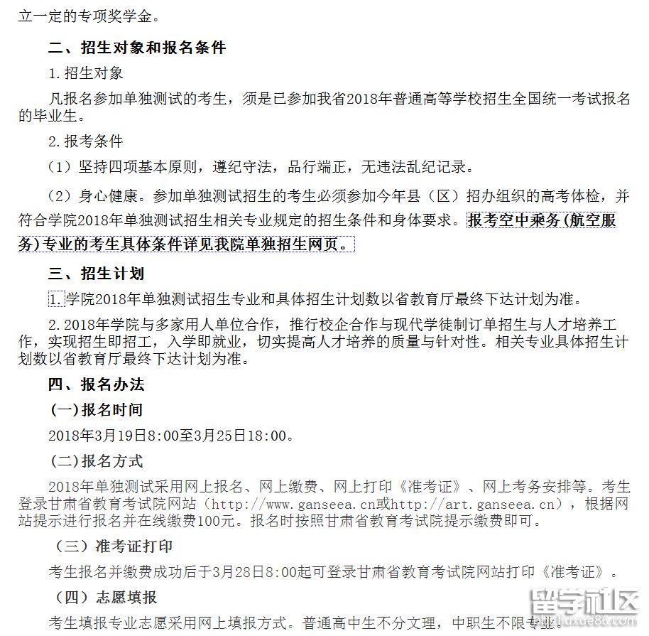 甘肅交通職業(yè)技術(shù)學(xué)院2018年單獨(dú)招生報(bào)考指南
