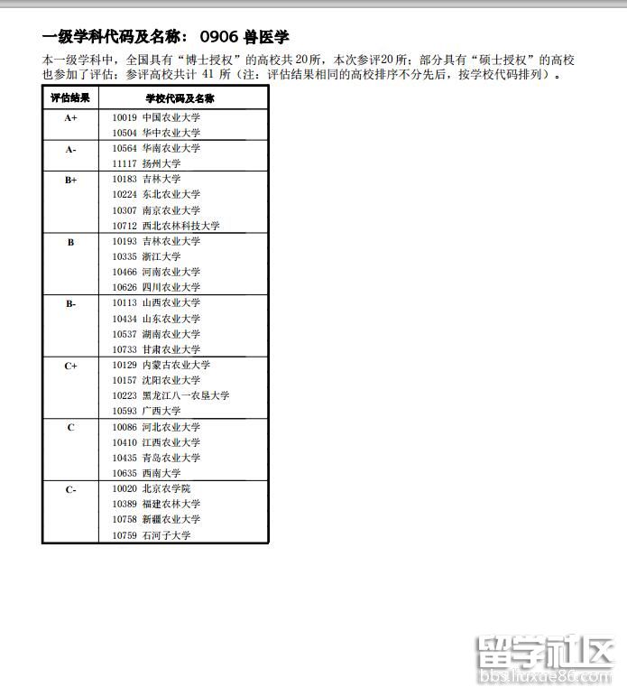 全國高校學(xué)科評(píng)估結(jié)果:一級(jí)學(xué)科獸醫(yī)學(xué)大學(xué)排名